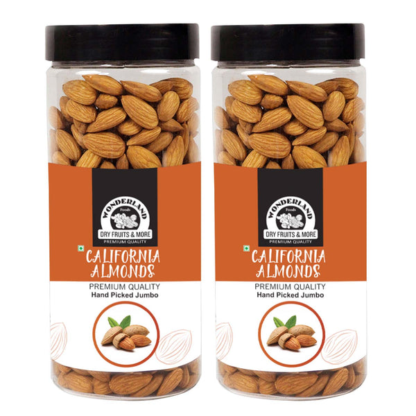 Wonderland Foods 1Kg (500g X 2) California Hand Picked Bold Almond (Badam) Jar