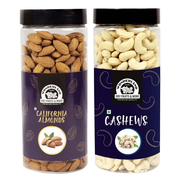 Wonderland Foods 1Kg (500g X 2) Dry Fruits Combo of California Almonds (NP) & Cashews W320 Jar